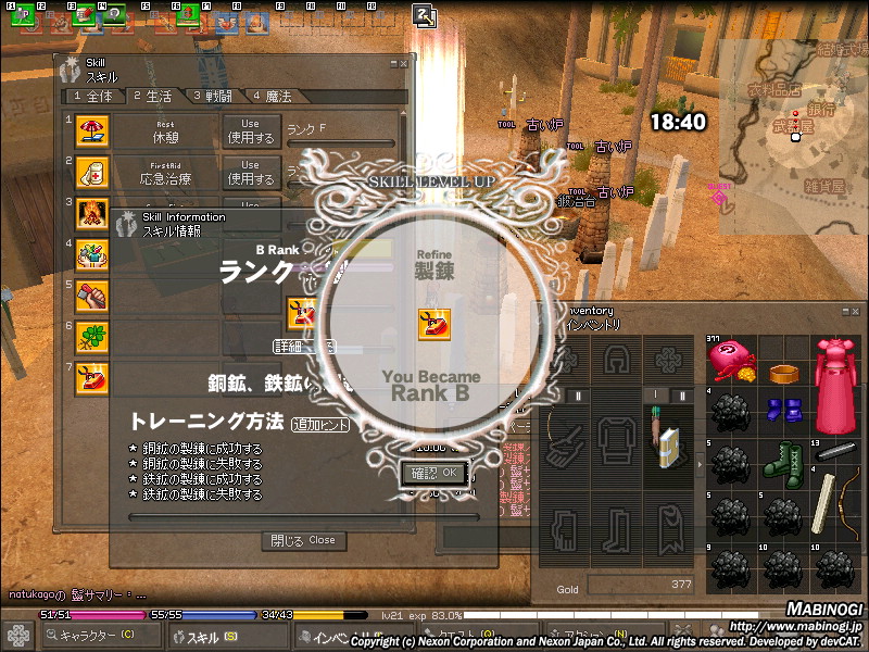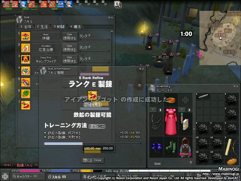 鉄インゴット精錬成功率はランクアップで+5%である模様。(ランクC現在)