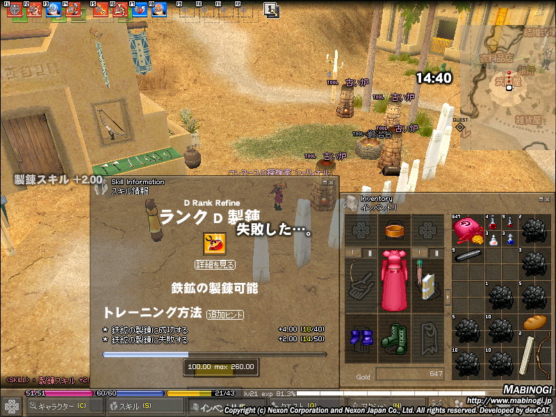 どうせならインゴットを作れるキャラが欲しいのでエルフで精錬を上げ始めてみました。